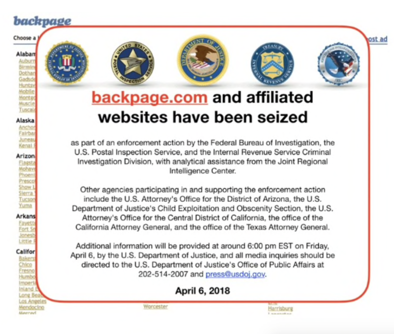 Backpage.com was taken down and seized by federal law enforcement, according to a notice posted online.