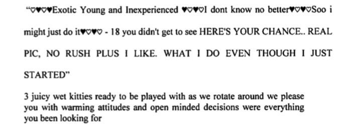 Advertisements like the examples below were ‘reassigned’ in a thinly-veiled attempt to throw prosecutors off their trail: