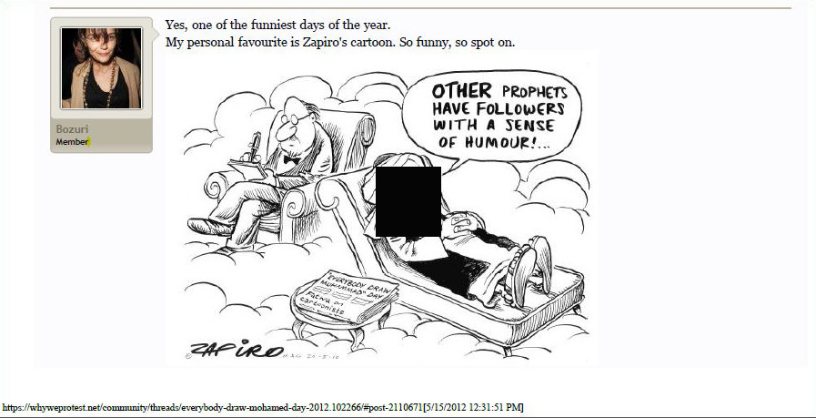 It was under (what she believed to be) this cover of anonymity that Silverstein worked to publicize a sickening stunt orchestrated by Anonymous which they mockingly dubbed “ Everybody Draw Mohammed Day”. The stunt was designed to offended millions of Muslims worldwide, and it did exactly that.